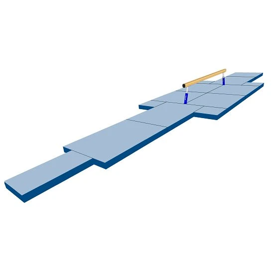 Der Bänfer Fallschutz-Mattensatz für Schwebebalken „Exklusiv-Microswing“ besteht aus 13 Matten. Die Oberfläche der Niedersprungmatten ist fest mit dem Mattenkern verklebt, sodass keine Wellen oder Falten im Nadelfilz entstehen. Der Mattenkern wird durch eine zusätzliche Randverstärkung gestützt und gibt der kompletten Matte mehr Stabilität. Die einzelnen Matten haben auf der Oberseite ein 10 cm breites Flauschband und lassen sich mittels 20 cm breiten Klettbandlaschen schnell und einfach miteinander verbinden. Es entsteht eine Fallschutz-Fläche von 48 m².