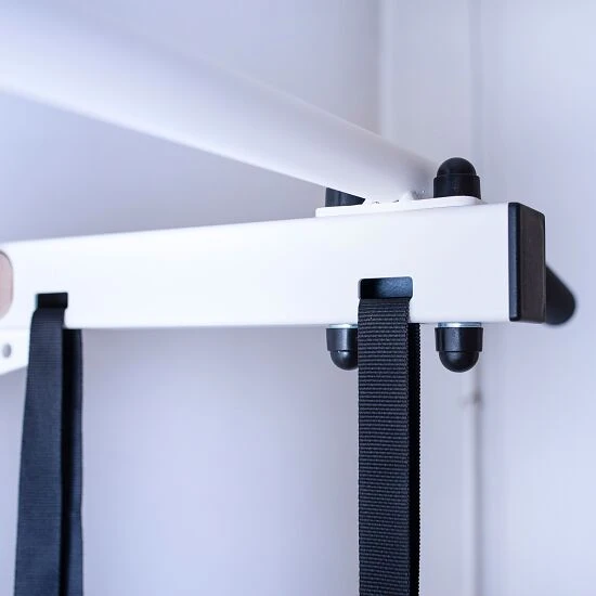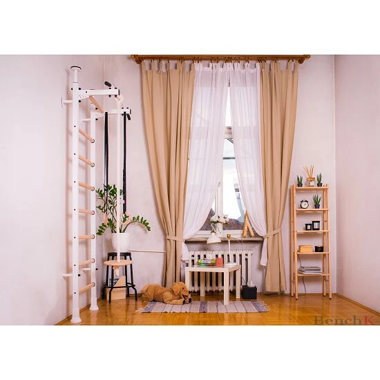 Stabil, für Kinder sowie Erwachsene geeignet und optisch ein Hingucker – die Rede ist vom BenchK Sprossenwand-Fitness-System „521W + A204“. Dank der weißen Konstruktion mit Holzsprossen fügt sich die Sprossenwand ideal in jeden Raum ein. Hiermit können Kids schaukeln, am Seil hochklettern oder die Sprossen erklimmen. Aber auch Erwachsene profitieren von der Ausstattung. Von klassischen Klimmzügen über Bauchübungen bis hin zu anspruchsvollem Training an den Turnringen, alles ist möglich.