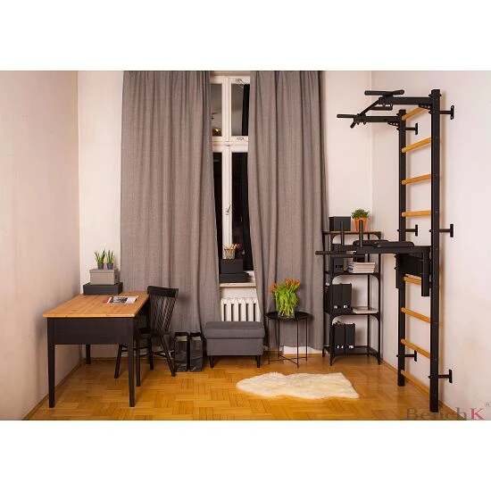 Dank abnehmbarer Klimmzugstange bietet das Fitness-System „722“ von BenchK eine unkomplizierte und sichere Höhenverstellung oder Demontage. Besonders stabil ist die Wand dank der verbauten Metallelemente, die alle 2 mm dick und pulverschwarz matt lackiert sind. Das Besondere an dieser Sprossenwand: Die Sprossen aus der Holzlithiumbuche sind nicht lackiert. Sie sind mit 2 Schichten eines organischen, deutschen Öls, welches auf Basis eines Leinöls entsteht, handgeölt. Durch Zubehör (nicht im Lieferumfang) wie Turnringe können Sie das System nicht nur für klassische Klimmzüge, Bauchübungen und Co. verwenden, sondern auch für zahlreiche, weitere Übungen.