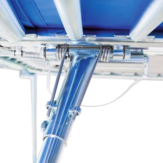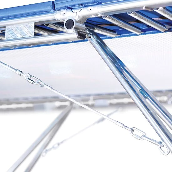 - 50 mm Rahmenpolster stationär: Ideal für Leistungszentren, wo das Trampolin in der Regel dauerhaft stehen bleibt.