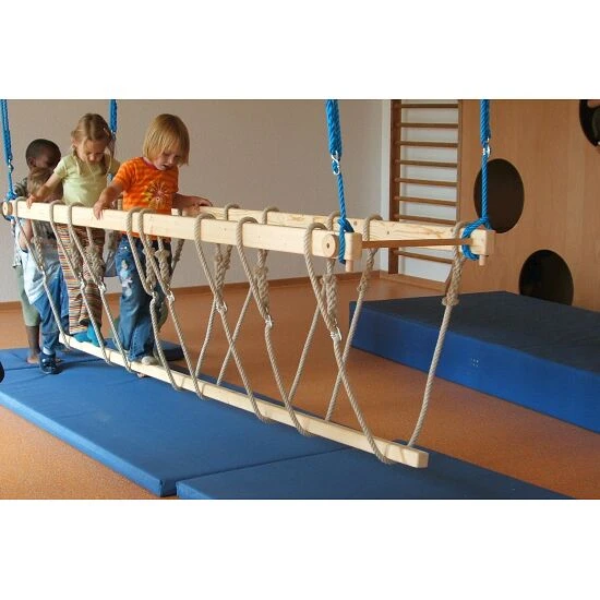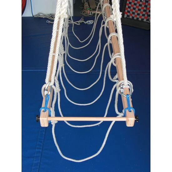 - Komplett mit Laufhölzern, Querleisten, Langsteg, Trittplatten und 4 verstellbaren Aufhängeseilen à 150 cm