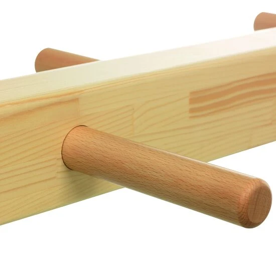 - Untere Seite mit 4 cm Aussparung im Balken zum Einhängen in Sprossen oder Kästen
