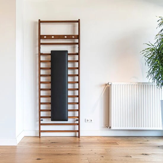 Mit der Schrägbank „Wallbars“ von Nohrd erhalten Sie eine mit Kunstleder bezogene Schrägbank, die auch als Rückenpolster oder Trainingsbank eingesetzt werden kann. Die Bank lässt sich auf jeder Sprosse (max. Höhe 95 cm) der Sprossenwand einhängen. Dank der verschiedenen Winkel sind vielseitige Übungen möglich. Nach dem Training lässt sie sich platzsparend an eine Sprosse hängen.