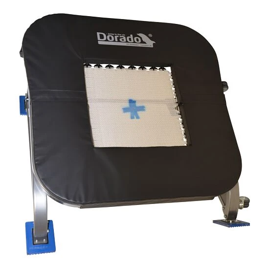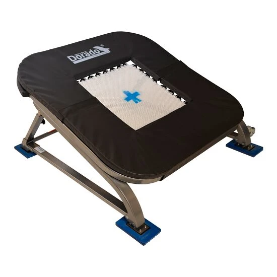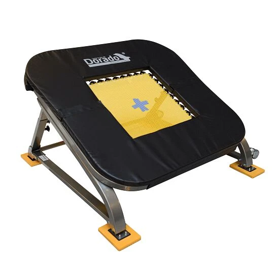Das PE-Redskaber Minitramp für TeamGym „Dorado“ zeichnet sich durch sein stilvolles Design und vor allem durch den sehr stabilen sowie kraftvollen Zug aus. Es steht auch unter schwersten Lasten stets stabil, bietet einen ausgezeichneten Rückprall und ist zudem sehr leise. Dank der einfachen Höhenverstellung lässt es sich von Junioren, Senioren sowie Eliteturnern ideal nutzen. Darüber hinaus bietet das PE-Redskaber Minitramp für TeamGym „Dorado“ Transporträder, stabile Rahmenpolster auf allen Seiten und rutschfeste Füße. Die Beine sind verstellbar und mit lasergravierten Markierungen für eine einstellbare Höhe versehen. Ohne Werkzeug lässt es sich einfach und schnell zusammenklappen. Hervorzuheben ist ebenfalls die Art und Weise, wie die Federn befestigt sind: Sie sind auf der Innenseite des Rahmens angebracht, sodass sie den Stahlrahmen auch bei stärksten Zugbelastungen nicht berühren – die Federn können frei schwingen.