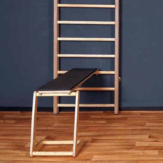 Mit dem Pedalo Schrägbrett verwandeln Sie fast jede Sprossenwand in ein vielseitiges Fitnessgerät für das Training der Bauch- und Rückenmuskulatur sowie Arm- und Beintraining. Das Anbringen ist dank Drehmechanismus besonders sicher und stabil. Der unterschiedlich einstellbare Neigungswinkel ermöglicht besonders vielseitige Übungen. Die Ausführung ohne Einminidips lässt sich als klassisches Schrägbrett bzw. Einhängebrett nutzen. Die Variante mit Einminidips sorgt dafür, dass Sie das Schrägbrett auflegen können und es sich dadurch z. B. auch waagerecht als Hantelbank nutzen lässt. Die Gummistopper sorgen für festen Stand auf jedem Boden und schonen den Untergrund.