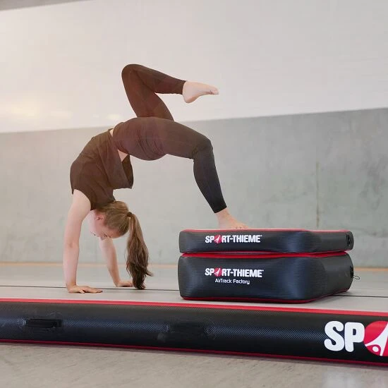Das Sport-Thieme AirTrack-Set „Basic CarbonCarbon ist ein aus Kohlenstoff-Fasern verstärkter Kunststoff. Aufgrund des geringen Gewichts und der besonders hohen Festigkeit findet es häufig Verwendung, wenn vom Material eine hohe Belastbarkeit bei gleichzeitiger Leichtigkeit verlangt wird. Eine weitere Eigenschaft ist die gute Temperatur- und Wetterbeständigkeit.“ ist genau das Richtige für alle, die sich maximale Flexibilität beim Training wünschen. Mit seinen 3 Luftmatten bietet das Set eine Vielzahl an Übungsmöglichkeiten für neue Sprungfolgen. Zum Set gehören 4 Bestandteile: 1 AirFloor, 1 AirBoard, 1 Airblock und 1 Fußpumpe. Mit dem AirFloor, einem luftgefüllten Kissen mit absolut glatter PVC-Oberfläche, lassen sich besonders Sprünge und Sprungfolgen optimal üben. Zudem unterstützt die Bahn das Abspringen und Landen und reduziert eine Überbelastung der Sprunggelenke. Daher gibt die elastische Oberfläche besonders Anfängern ein stärkeres Sicherheitsgefühl und verleiht mehr Freude beim Training. Ergänzt wird das Sport-Thieme AirTrack „Basic” mit einem AirBoard und einem Airblock als federnde Absprunghilfen. Ob einzeln oder in Kombination – diese AirTracks ermöglichen verschiedenste Aufbauten und eine große Übungsvielfalt.