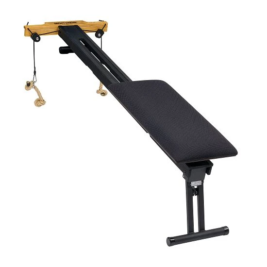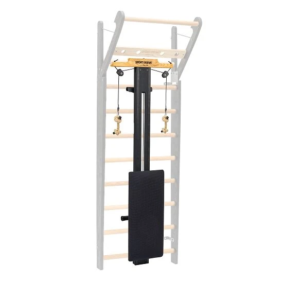 Der Nohrd Combi-Trainer „Sport-Thieme Edition“ ergänzt Ihre Sprossenwand bestmöglich. Die Trainingsbank im exklusiven Design lässt sich in verschiedenen Höhen in die Sprossen hängen. Für einen sicheren und festen Stand sorgt der ein- und ausklappbare Metallfuß. Klappen Sie den Fuß ein, können Sie den Trainer hochkant an der Sprossenwand lagern oder so als Beinpresse nutzen. Hierfür einfach gegen die rollbare Liegefläche lehnen. Die Sprossenwand ist nicht im Lieferumfang enthalten.