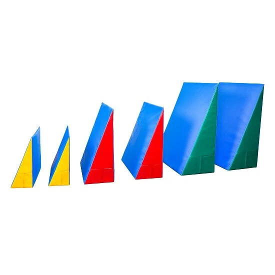 Das Sport-Thieme Keilmatten-Set „Colours“ besteht aus 6 Keilmatten in 3 Größen und ist vielseitig einsetzbar. Ob in der Therapie, Rehabilitation, Behinderten- oder Schulsport die schrägen Matten setzen neue Maßstäbe in puncto Sicherheit. Der Mattenkern aus hochwertigem Vollschaum und der rutschhemmende Bezug machen diese Matten enorm strapazierfähig. Zum Einsatz kommen die Keilmatten häufig als Minihürde, Absprungmatte oder als Hilfsmittel in Verbindung mit Sprungkästen.