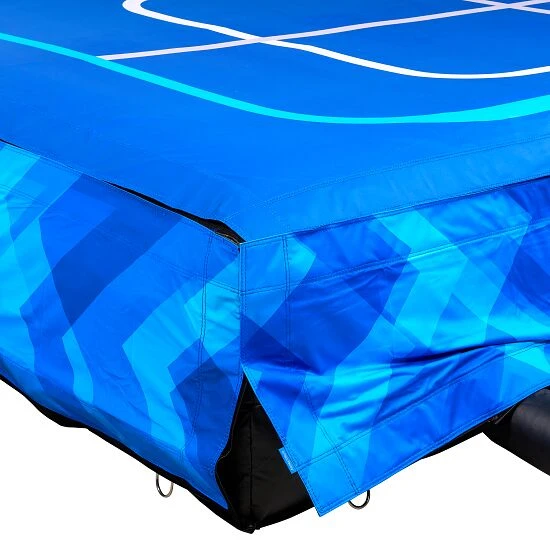 Der Sport-Thieme „AirBag S“ by AirTrack Factory ist eine 70 cm hohe, hygienische Faltmatte. Sie eignet sich für jede Sportart, in der gesprungen wird. Je nach gewünschtem Druck lässt sich die Matte auch als Landeplatz und für Rücken- oder auch gestandene Landungen optimal anpassen. Auch für Hochsprung (ohne Spikes) geeignet. Der AirBag punktet zudem mit einem leichten Transport und wenig benötigtem Stauraum. Ein echter Pluspunkt für Sporthallen, denn hierdurch sind keine Schaumstoffgruben notwendig. Zudem lässt sich der AirBag „S“ mit anderen AirTracks kombinieren (nicht im Lieferumfang). Die Ober- und Seitenlaken, sprich der Überzug, lassen Sie nach dem erstmaligen Aufbau einfach am AirBag befestigt. Eine Entfernung dieser Hülle ist nicht notwendig. Während der Nutzung muss das Gebläse laufen.