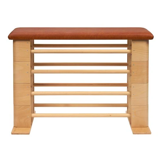 Der große Kasten „Kids“ ist aus Birke-MultiplexMultiplex-Platten sind Furnier-Sperrholzplatten aus mindestens 5 Furnierlagen gleicher Dicke. Die Lagen sind quer zueinander verleimt, d.h. die Richtung ihrer Maserung ist von Schicht zu Schicht um 90° gedreht. Dadurch sind die Platten extrem formstabil und halten sehr hohen Belastungen stand. Verwendung: z. B. Sprungkästen, Theken, Bühnenbau, Werkbänke, Treppenbau-Holz gefertigt und naturbelassen. Deckenplatte und -kanten des Kastenoberteils sind mit Verbundschaum gepolstert und mit Kunstleder bezogen. Beidseitige Aussparungen dienen zum Einhängen von Zusatzelementen, wie Kombi-Kletterlaufbrett oder Kombi-Kletterleiter. LxBxH: ca. 130x47x26 cm.