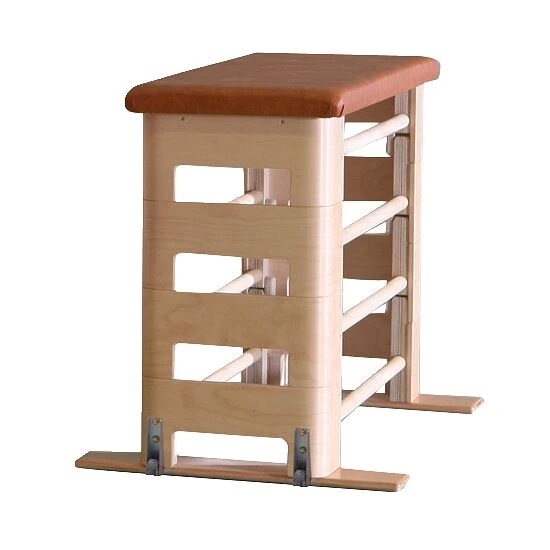 Das Kastenunterteil aus Birke-MultiplexMultiplex-Platten sind Furnier-Sperrholzplatten aus mindestens 5 Furnierlagen gleicher Dicke. Die Lagen sind quer zueinander verleimt, d.h. die Richtung ihrer Maserung ist von Schicht zu Schicht um 90° gedreht. Dadurch sind die Platten extrem formstabil und halten sehr hohen Belastungen stand. Verwendung: z. B. Sprungkästen, Theken, Bühnenbau, Werkbänke, Treppenbau-Holz hat 2 Standfüße aus Hartholz und ist mit einem Riffelgummi versehen. Dadurch steht der Sprungkasten jederzeit stabil und sicher. Optional mit 2 seitlich am Standfuß angebrachten Rollen für einen leichten Transport. LxBxH: ca. 130x47x22 cm.