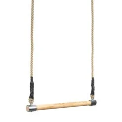 Die Trapezstange ist aus zähem, elastischem Eschenholz hergestellt und ca. 75 cm breit. Die Sprosse hat einen Durchmesser von 35 mm. An beiden Seiten des Trapezes sind Halteseile aus Polyseil (ca. 300 cm lang) angebracht. Die Trapezstange aus Holz ist nur für den Inneneinsatz geeignet. Die maximale Belastbarkeit beträgt ca. 80 kg.