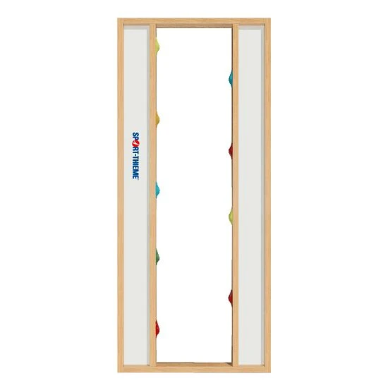 Das Sport-Thieme Turnwand-Einzelelement „Kletterkamin“ ist ein Einzelelement zur Wandmontage. Der Rahmen besteht aus Buche und die Platten sind aus Birke-MultiplexMultiplex-Platten sind Furnier-Sperrholzplatten aus mindestens 5 Furnierlagen gleicher Dicke. Die Lagen sind quer zueinander verleimt, d.h. die Richtung ihrer Maserung ist von Schicht zu Schicht um 90° gedreht. Dadurch sind die Platten extrem formstabil und halten sehr hohen Belastungen stand. Verwendung: z. B. Sprungkästen, Theken, Bühnenbau, Werkbänke, Treppenbau-Holz. Im Kletterahmen sind 9 Klettergriffe befestigt, an denen die Kinder hoch- und runterklettern können. Einfach rechts und links mit den Händen und Füßen an den Klettergriffen abstützen und schon kraxeln die Kinder den Kletterkamin schnell nach oben.