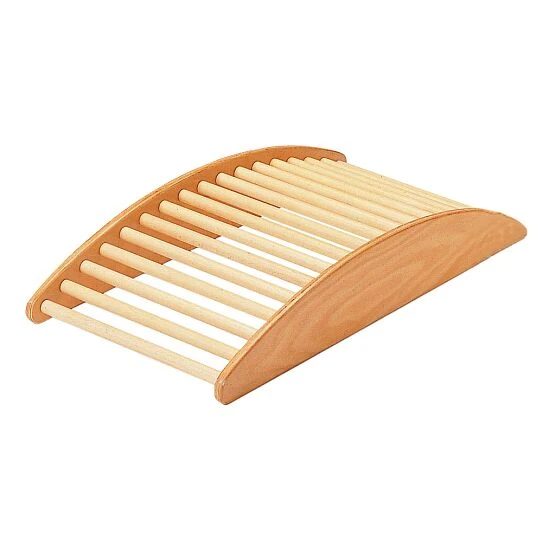 gefertigt. Sie besteht aus 2 langgezogenen Seitenwangen sowie 17 stabilen Sprossen. Während die oberen Längskanten der Wangen in gebogener Form verlaufen, sind die Unterkanten gerade. Die 3 cm starken Sprossen reihen sich mit einem Abstand von 2,5 cm an der gewölbten Kante entlang. Liegt die Wölbung oben, kann die Kletterwippe als stabile, wackelfreie Brücke zum Balancieren, drüber Laufen, drauf Klettern oder Sitzen genutzt werden. Befindet sich die Wölbung unten, können die Kinder auf diesem besonderen Wippbrett seitlich hin und her schaukeln und wippen – auch klasse als Schaukelstuhl und Wipp-Liege. In Kombination mit weiteren Sprossenwippen oder anderen Turngeräten lassen sich abwechslungsreiche Balancier-Pfade und Bewegungsbaustellen für das Kinderturnen oder für den Bewegungsraum im Kindergarten konstruieren.Weitere Details zur Sprossenwippe